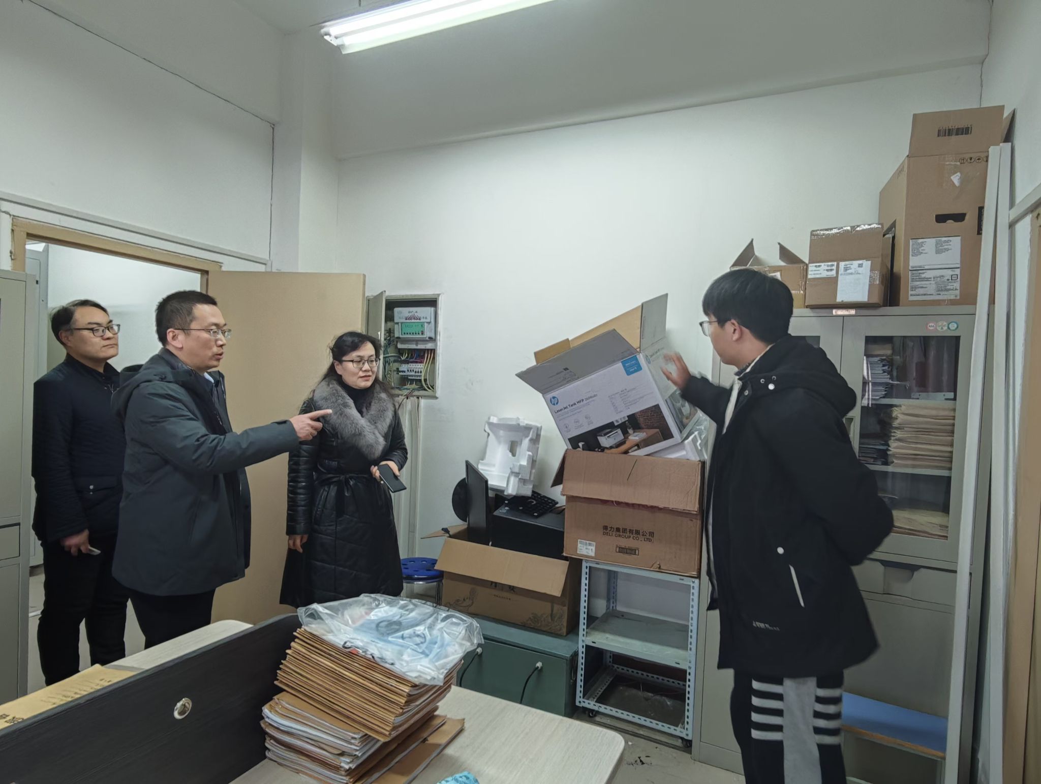为确保假期实验室安全,1月14日下午,学院党委书记张颖、执行院长朱永胜、办公室副主任乔百豪、实验中心副主任郭飞亚组成检查组,对学院实验室等场所进行安全检查。