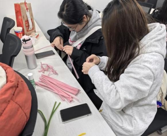 节日前夕,学生们学习扭扭花的制作技巧,亲手制作出郁金香、小雏菊等形态各异的花朵。过程中,大家互相交流创意,有的将花瓣设计成不同颜色,有的为花朵添加绿叶点缀,每一处细节都凝聚着对老师的真挚心意。