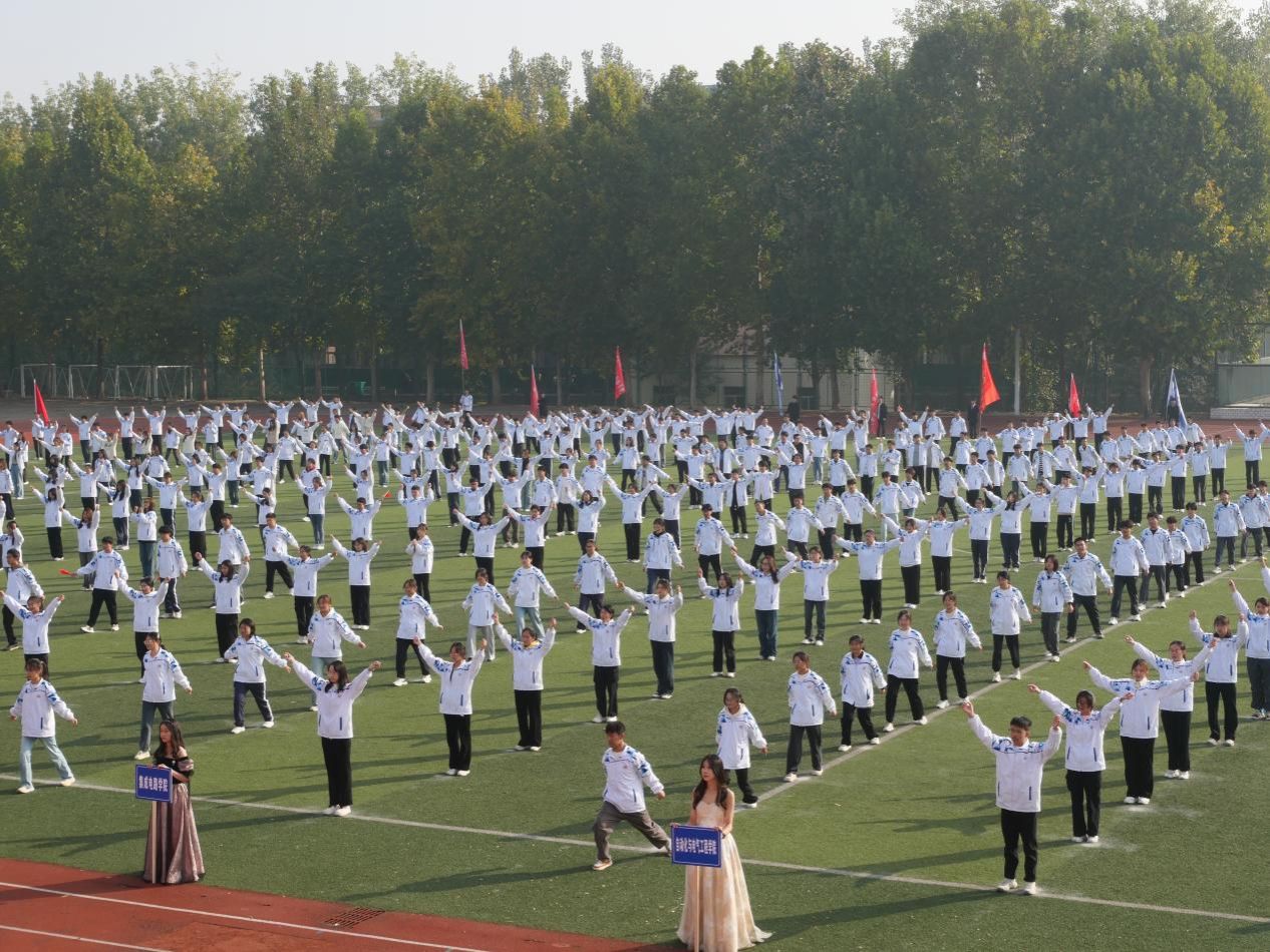 图二为开幕式结尾我院学生共跳团体操